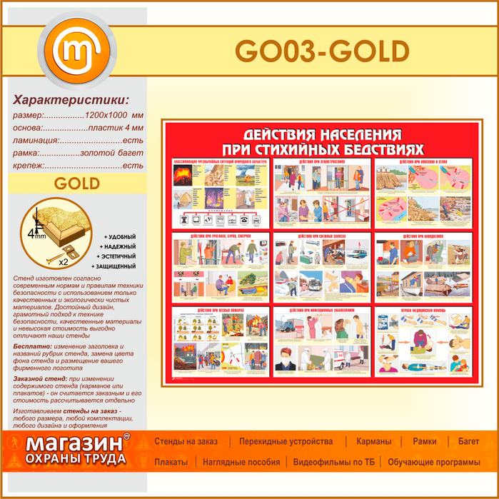 Стенд «Действия населения при стихийных бедствиях» (GO-03-GOLD) в Волгограде купить