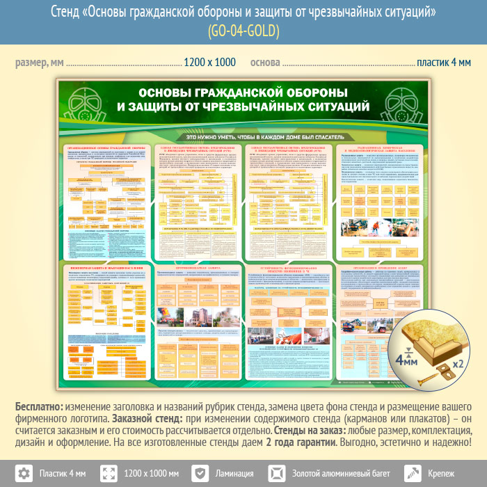 Стенд «Основы гражданской обороны и защиты от чрезвычайных ситуаций» (GO-04-GOLD) в Волгограде купить
