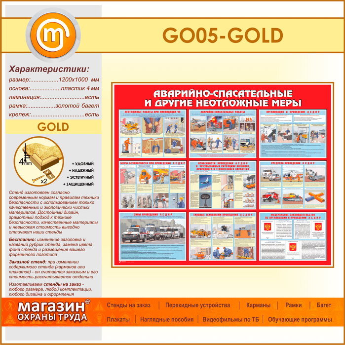 Стенд «Аварийно-спасательные и другие неотложные меры» (GO-05-GOLD) в Волгограде купить