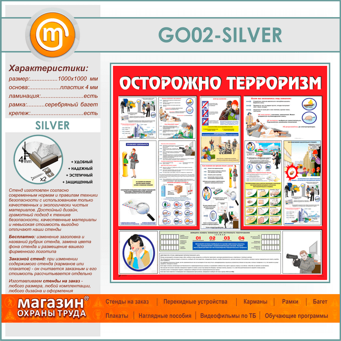Стенд «Осторожно терроризм!» (GO-02-SILVER) в Волгограде купить