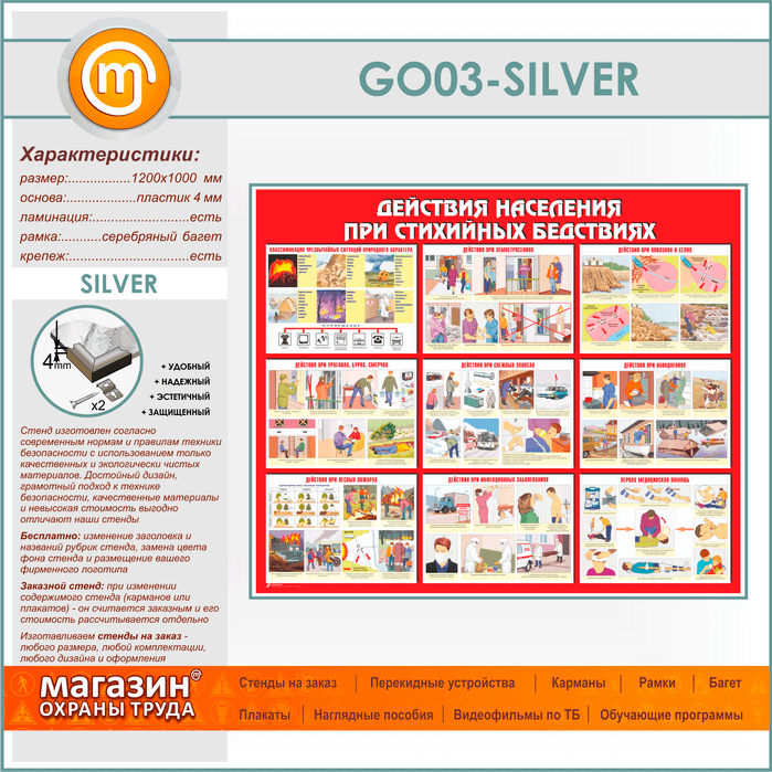Стенд «Действия населения при стихийных бедствиях» (GO-03-SILVER) в Волгограде купить
