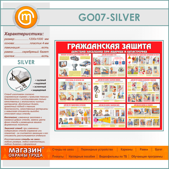 Стенд «Гражданская защита» (GO-07-SILVER) в Волгограде купить