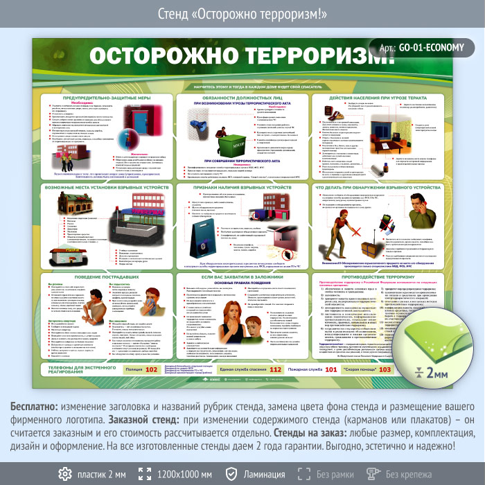 Стенд «Осторожно терроризм!» (GO-01-ECONOMY) в Волгограде купить