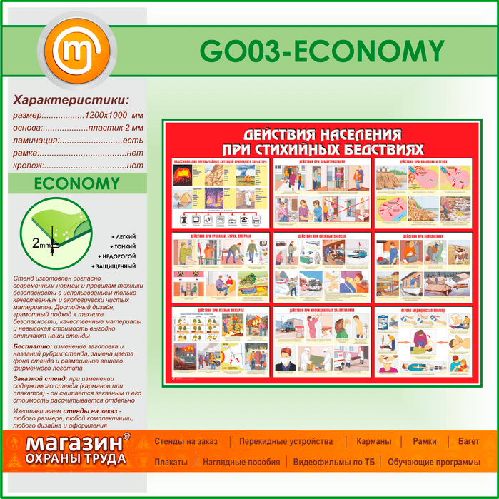 Стенд «Действия населения при стихийных бедствиях» (GO-03-ECONOMY) в Волгограде купить