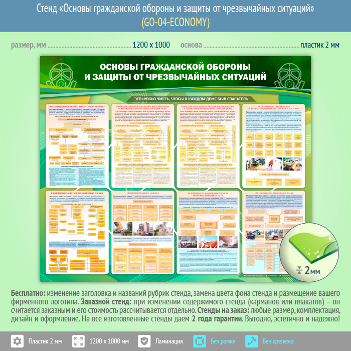 Стенд «Основы гражданской обороны и защиты от чрезвычайных ситуаций» (GO-04-ECONOMY) в Волгограде купить