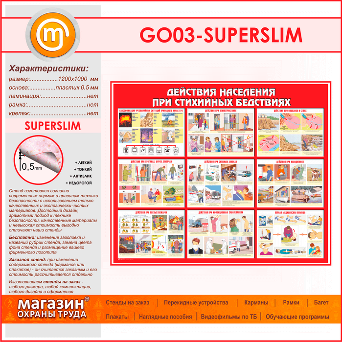 Стенд «Действия населения при стихийных бедствиях» (GO-03-SUPERSLIM) в Волгограде купить