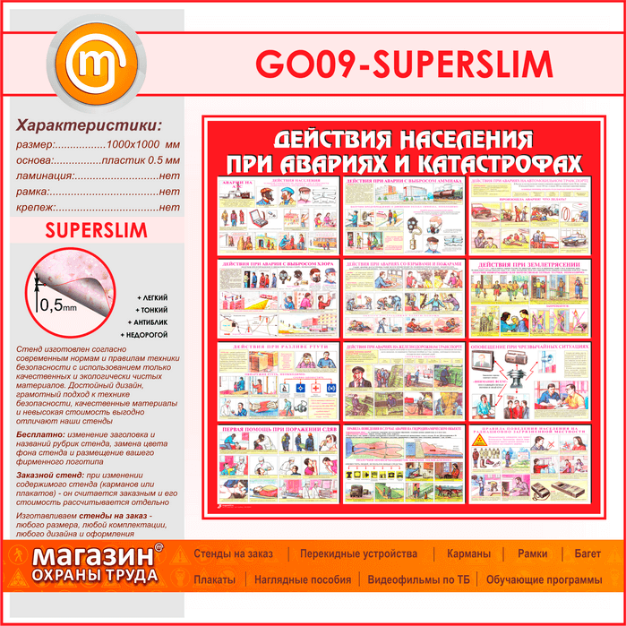 Стенд «Действия населения при авариях и катастрофах» (GO-09-SUPERSLIM) в Волгограде купить