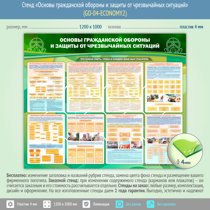 Стенд «Основы гражданской обороны и защиты от чрезвычайных ситуаций» (GO-04-ECONOMY2) в Волгограде купить