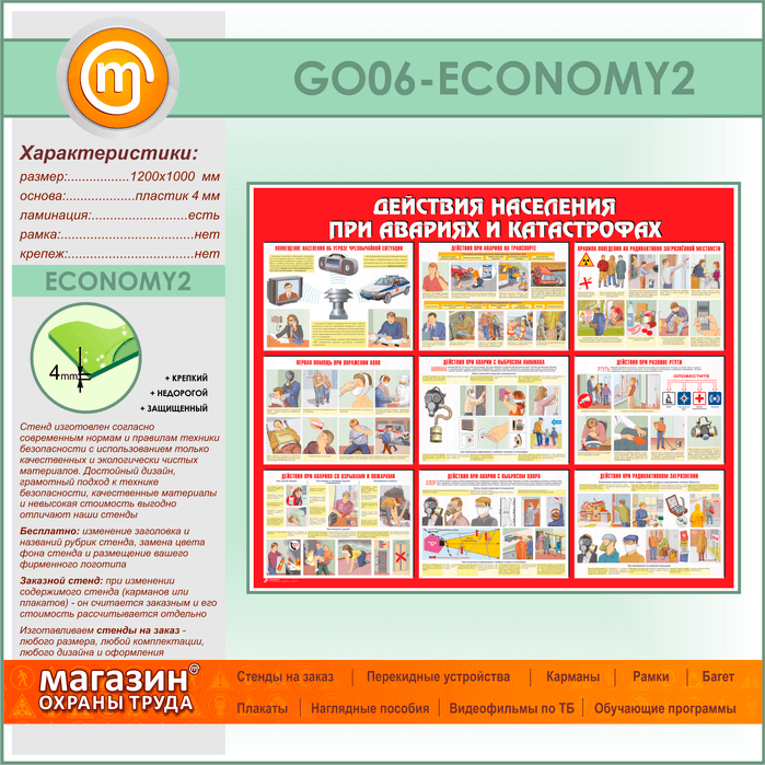 Стенд «Действия населения при авариях и катастрофах» (GO-06-ECONOMY2) в Волгограде купить