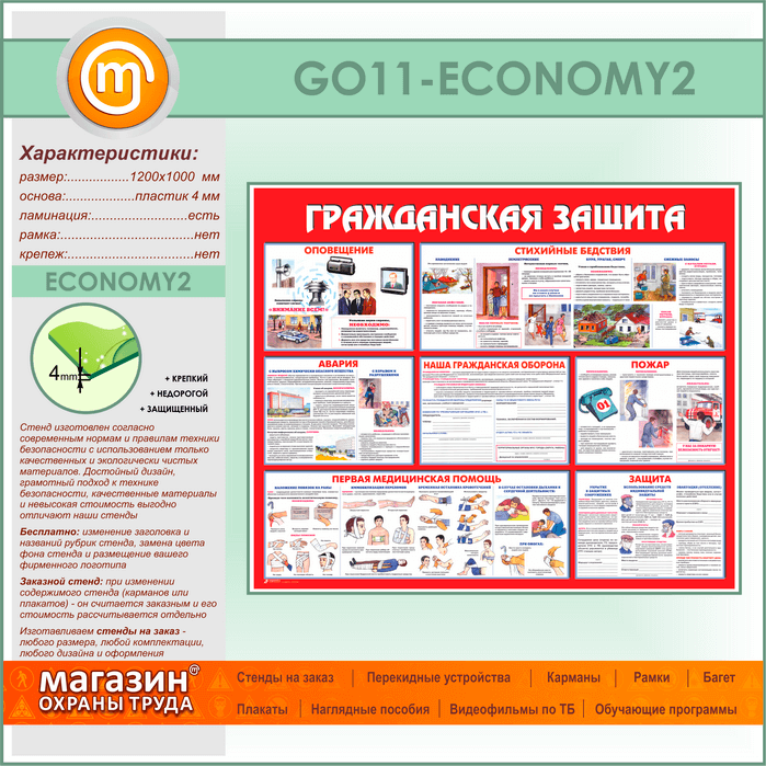 Стенд «Гражданская защита» (GO-11-ECONOMY2) в Волгограде купить