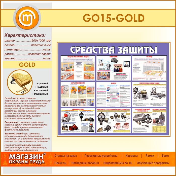 Стенд «Средства защиты» (GO-15-GOLD) в Волгограде купить