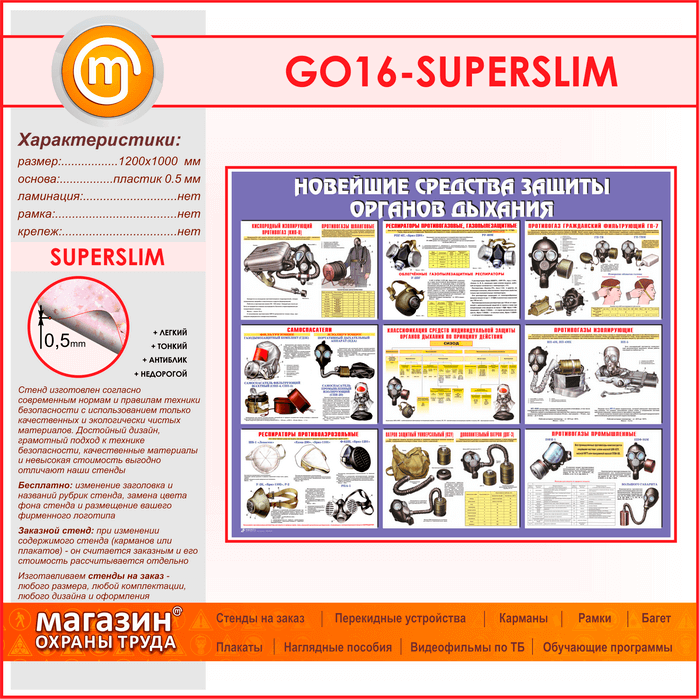 Стенд «Новейшие средства защиты органов дыхания» (GO-16-SUPERSLIM) в Волгограде купить