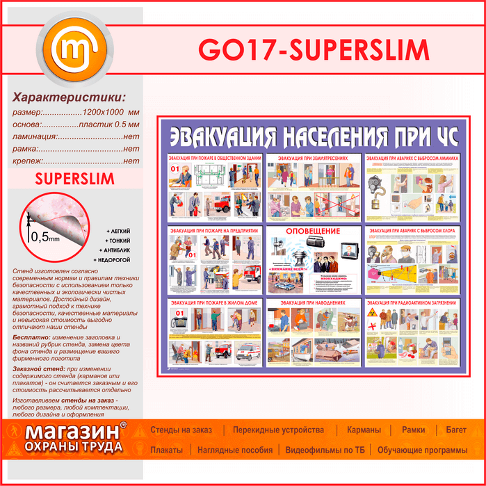 Стенд «Эвакуация населения при ЧС» (GO-17-SUPERSLIM) в Волгограде купить