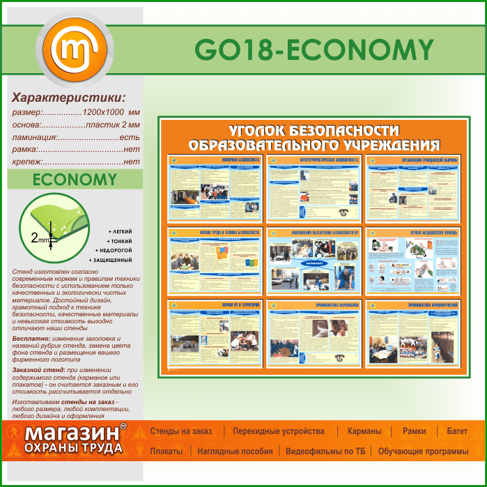 Стенд «Уголок безопасности образовательного учреждения» (GO-18-ECONOMY) в Волгограде купить