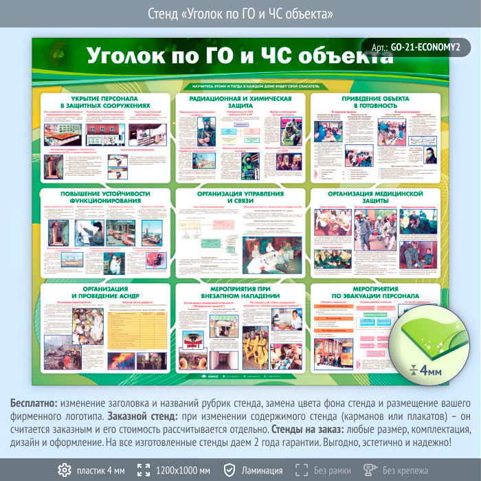 Стенд «Уголок по ГО и ЧС объекта» (GO-21-ECONOMY2) в Волгограде купить
