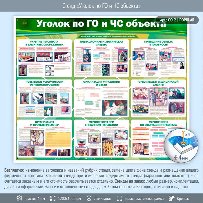 Стенд «Уголок по ГО и ЧС объекта» (GO-21-POPULAR) в Волгограде купить