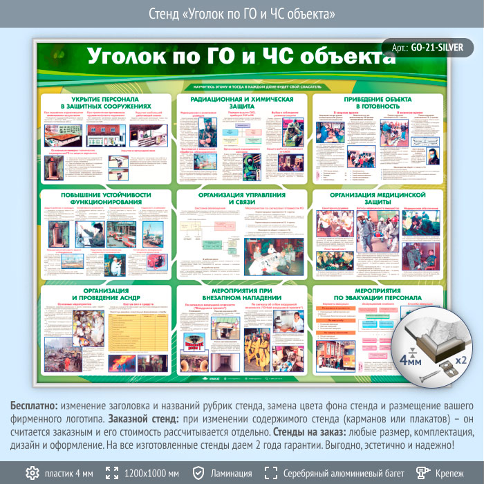Стенд «Уголок по ГО и ЧС объекта» (GO-21-SILVER) в Волгограде купить