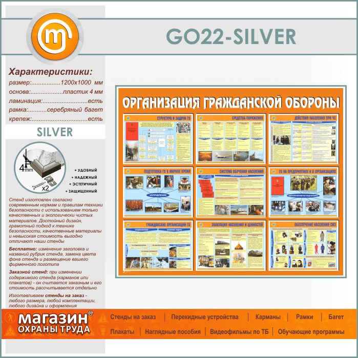 Стенд «Организация гражданской обороны» (GO-22-SILVER) в Волгограде купить