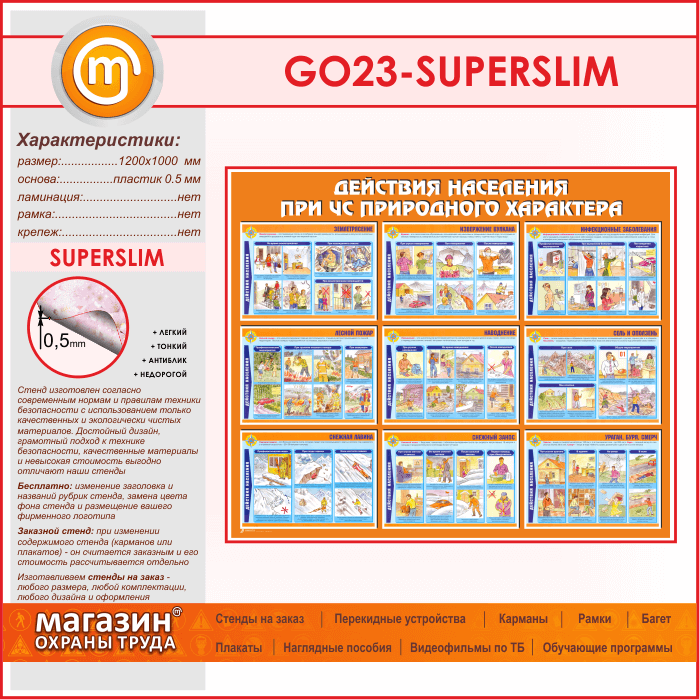 Стенд «Действия населения при ЧС природного характера» (GO-23-SUPERSLIM) в Волгограде купить