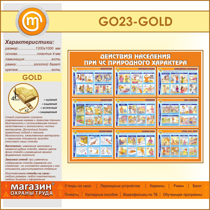 Стенд «Действия населения при ЧС природного характера» (GO-23-GOLD) в Волгограде купить