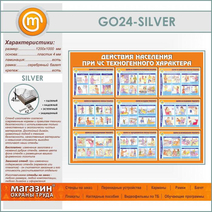 Стенд «Действия населения при ЧС техногенного характера» (GO-24-SILVER) в Волгограде купить
