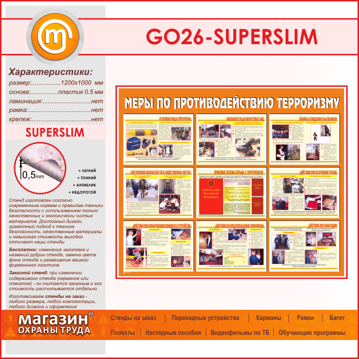Стенд «Меры по противодействию терроризму» (GO-26-SUPERSLIM) в Волгограде купить