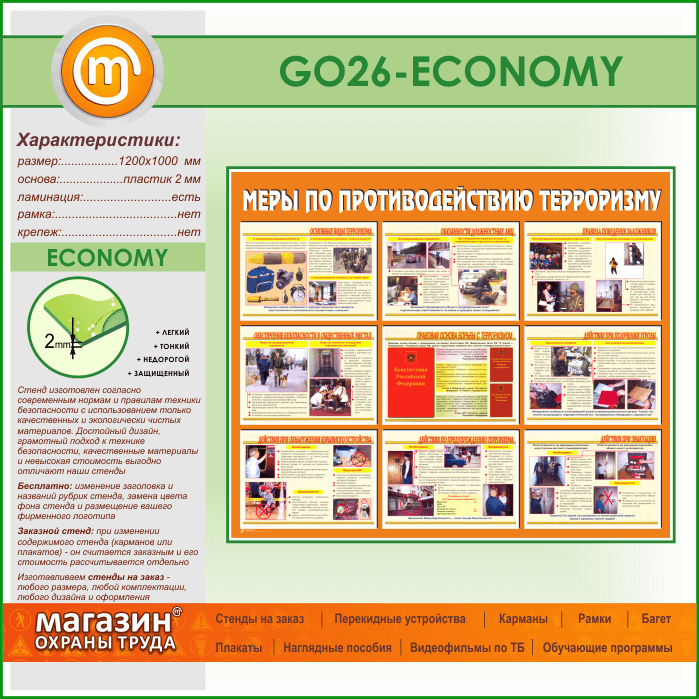Стенд «Меры по противодействию терроризму» (GO-26-ECONOMY) в Волгограде купить