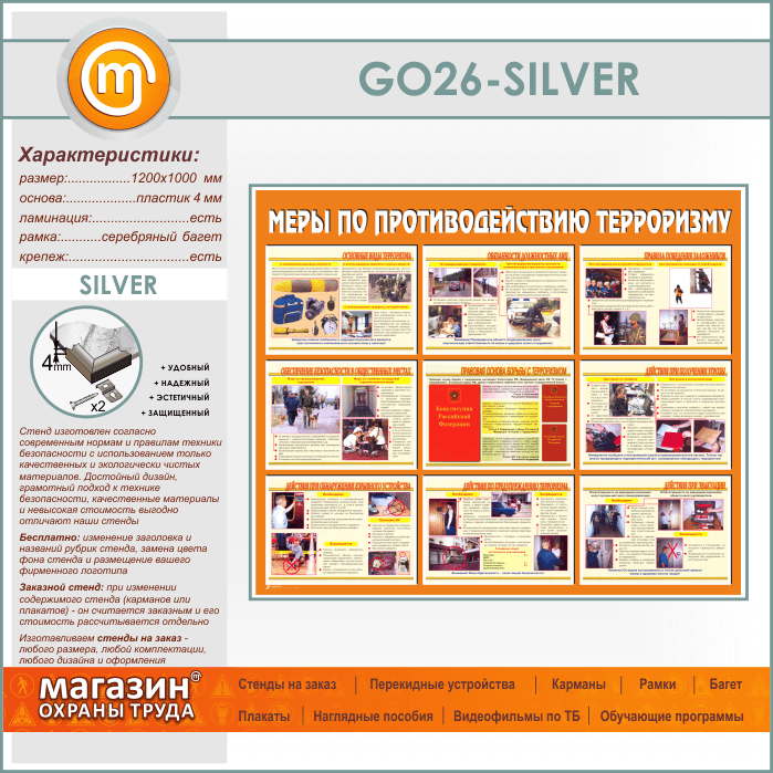 Стенд «Меры по противодействию терроризму» (GO-26-SILVER) в Волгограде купить