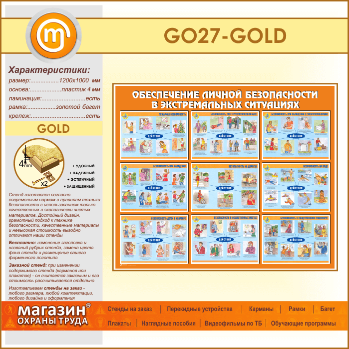 Стенд «Обеспечение личной безопасности в экстремальных ситуациях» (GO-27-GOLD) в Волгограде купить