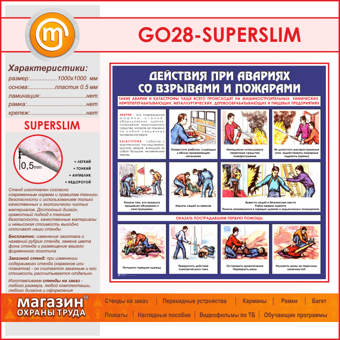 Стенд «Действия при авариях со взрывами и пожарами» (GO-28-SUPERSLIM) в Волгограде купить