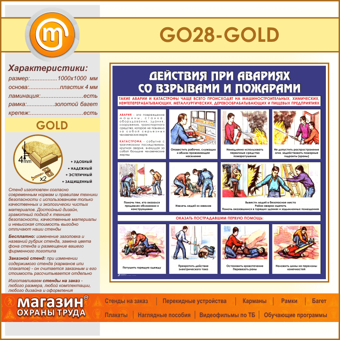 Стенд «Действия при авариях со взрывами и пожарами» (GO-28-GOLD) в Волгограде купить