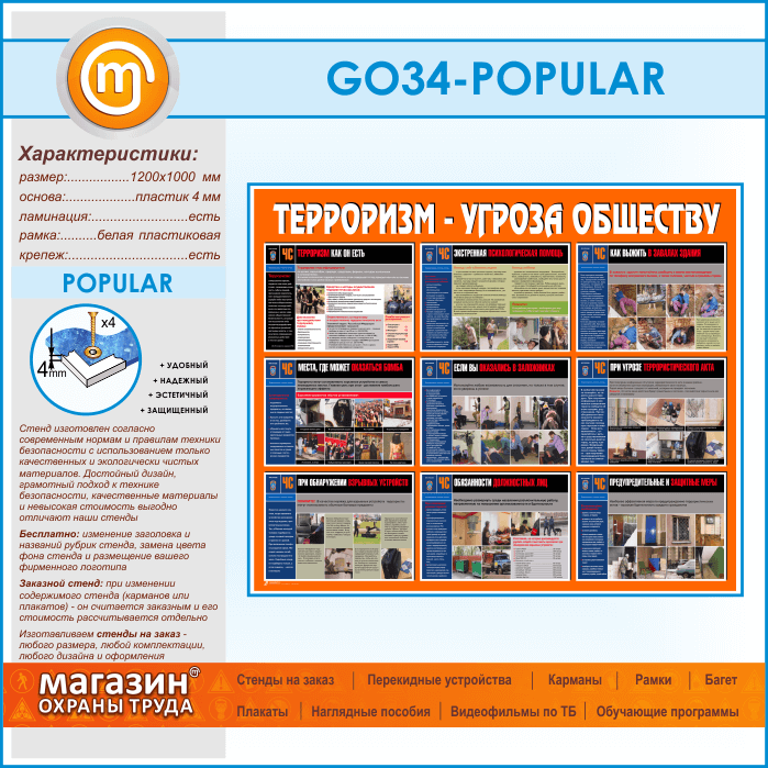 Стенд «Терроризм - угроза обществу» (GO-34-POPULAR) в Волгограде купить