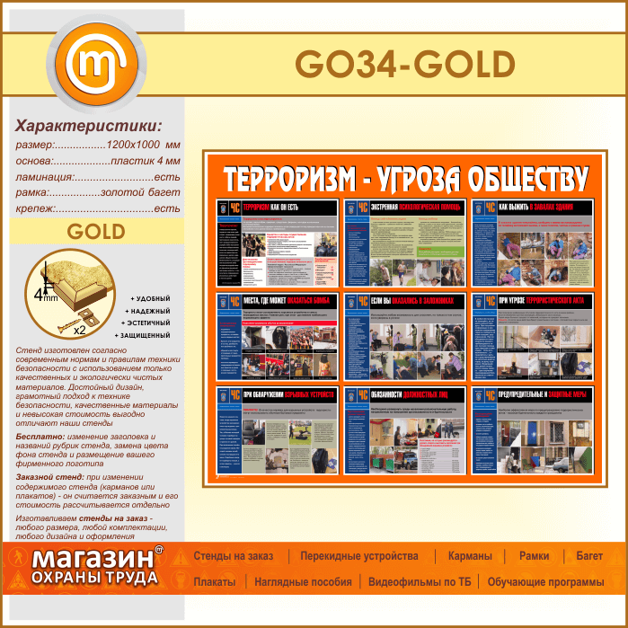 Стенд «Терроризм - угроза обществу» (GO-34-GOLD) в Волгограде купить