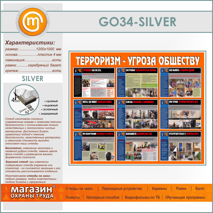 Стенд «Терроризм - угроза обществу» (GO-34-SILVER) в Волгограде купить