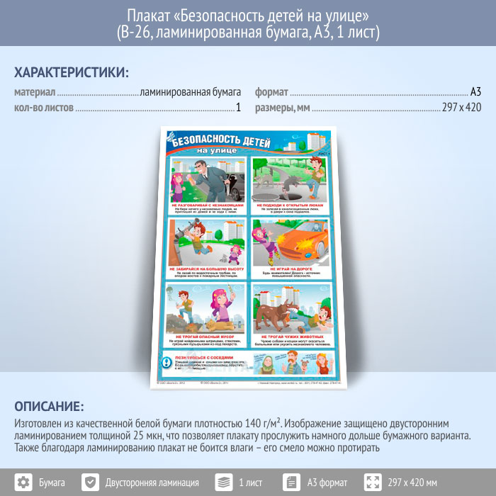 Плакат «Безопасность детей на улице» (В-26, ламинированная бумага, А3, 1 лист) в Волгограде купить