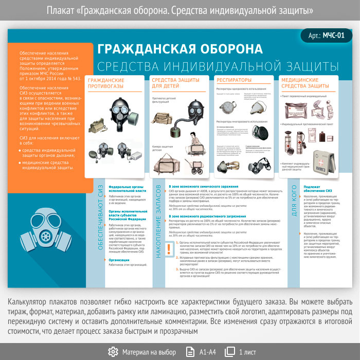 Плакат «Гражданская оборона. Средства индивидуальной защиты» (МЧС-01, 1 лист) в Волгограде купить