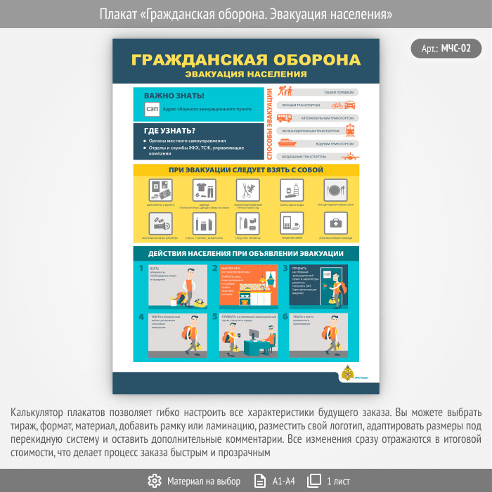 Плакат «Гражданская оборона. Эвакуация населения» (МЧС-02, 1 лист) в Волгограде купить