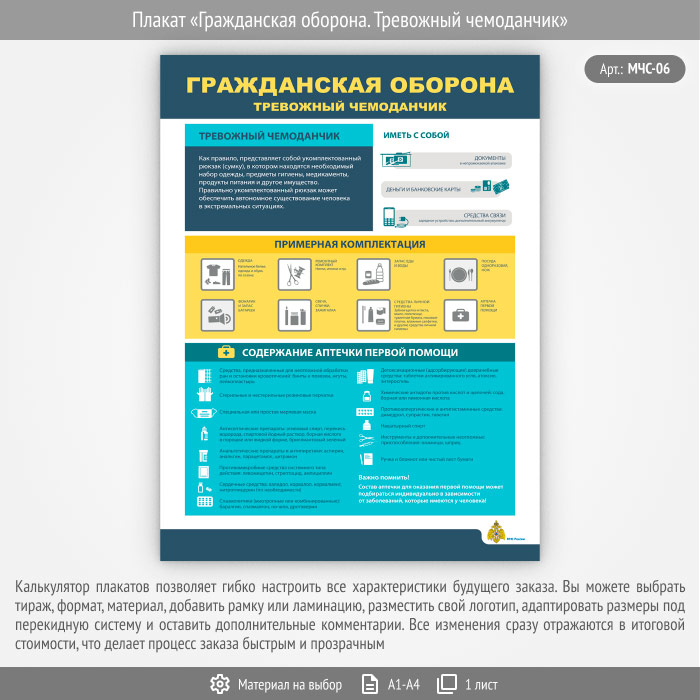 Плакат «Гражданская оборона. Тревожный чемоданчик» (МЧС-06, 1 лист) в Волгограде купить