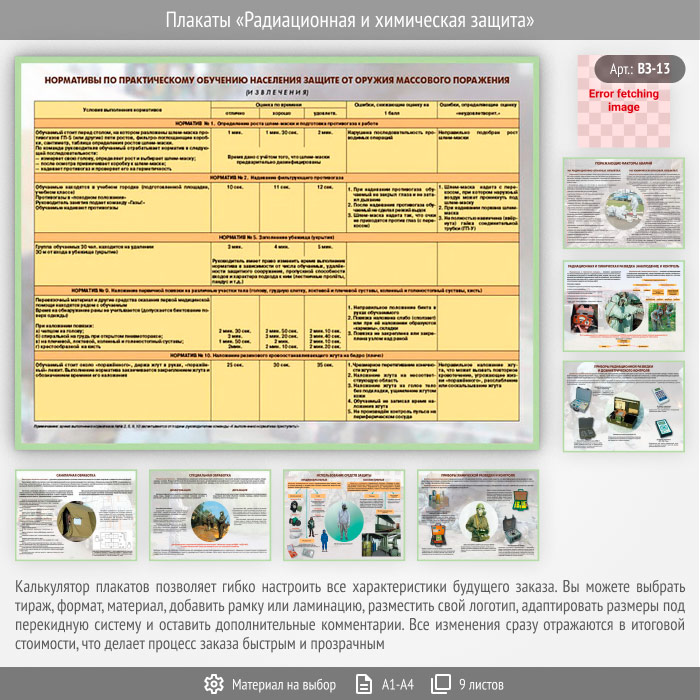 Плакаты «Радиационная и химическая защита» (ВЗ-13, 9 листов) в Волгограде купить