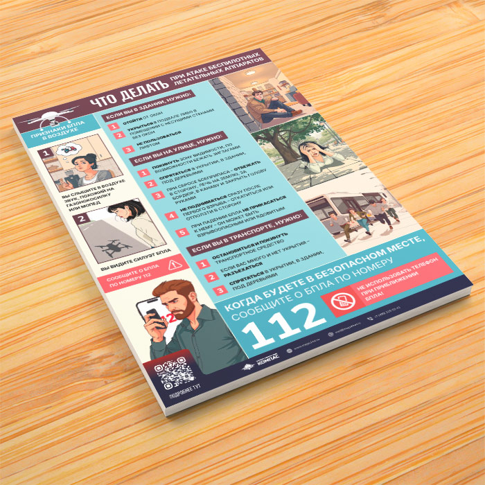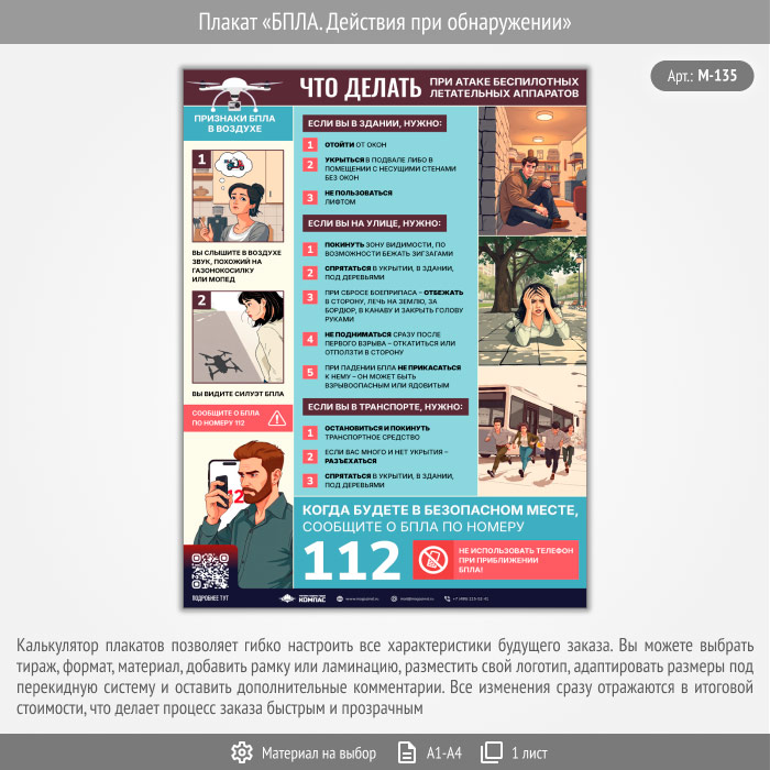 Плакат «БПЛА. Действия при обнаружении» с QR (М-135, 1 лист) в Волгограде купить