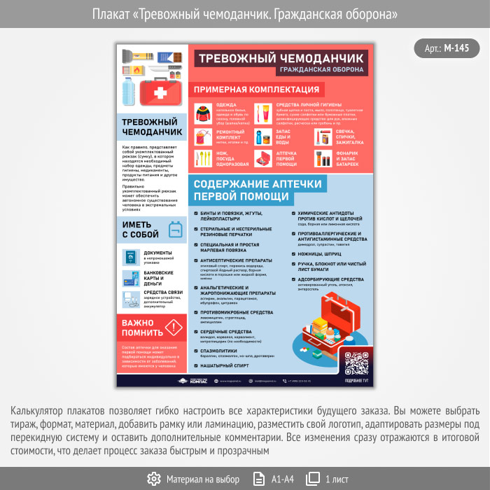 Плакат «Тревожный чемоданчик. Гражданская оборона» с QR (М-145, 1 лист) в Волгограде купить