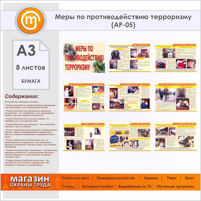 Плакаты «Меры по противодействию терроризму» (АР-05, бумага, А3, 8 листов) в Волгограде купить
