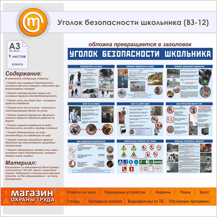 Плакаты «Уголок безопасности школьника» (ВЗ-12, бумага, А3, 10 листов) в Волгограде купить
