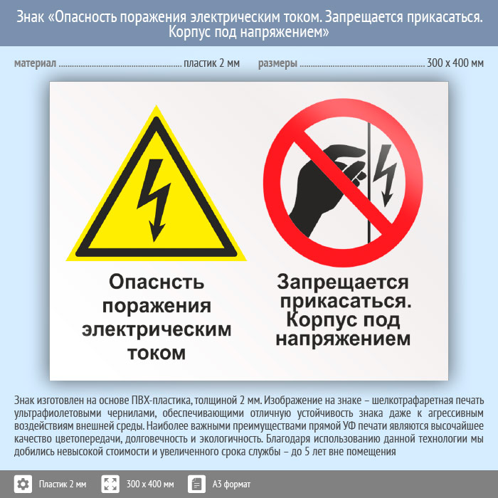 Знак «Опасность поражения электрическим током. Запрещается прикасаться. Корпус под напряжением», КЗ-47 (пластик, 400х300 мм) в Волгограде купить