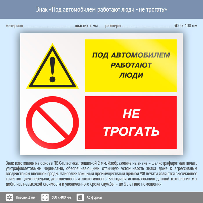 Знак «Под автомобилем работают люди - не трогать», КЗ-66 (пластик, 400х300 мм) в Волгограде купить