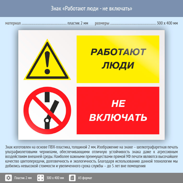 Знак «Работают люди - не включать», КЗ-83 (пластик, 400х300 мм) в Волгограде купить