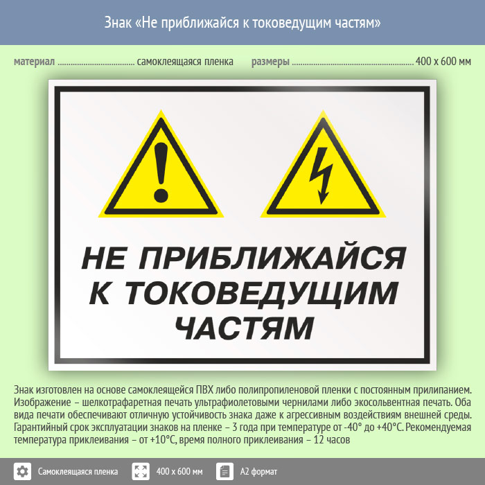 Знак «Не приближайся к токоведущим частям», КЗ-29 (пленка, 600х400 мм) в Волгограде купить