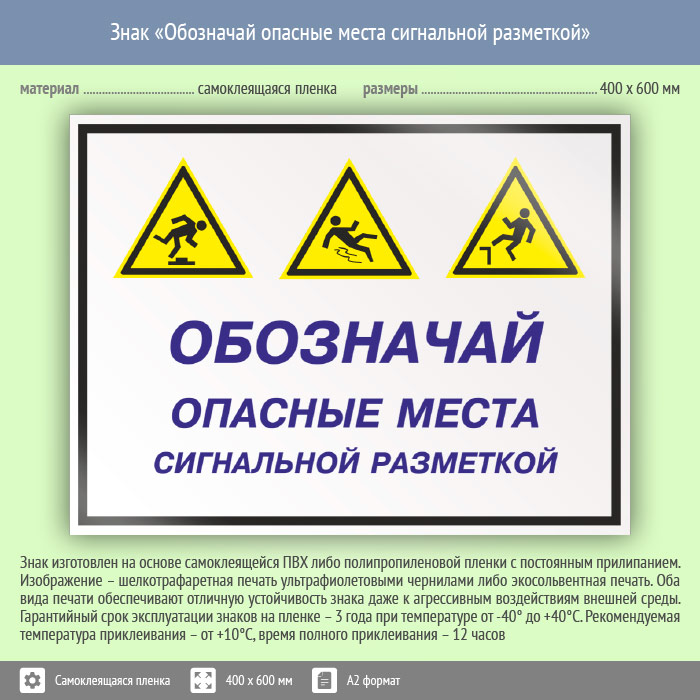 Знак «Обозначай опасные места сигнальной разметкой», КЗ-30 (пленка, 600х400 мм) в Волгограде купить