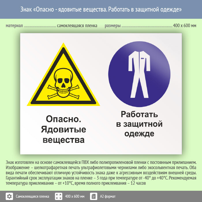 Знак «Опасно - ядовитые вещества. Работать в защитной одежде», КЗ-42 (пленка, 600х400 мм) в Волгограде купить