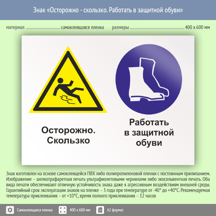 Знак «Осторожно - скользко. Работать в защитной обуви», КЗ-57 (пленка, 600х400 мм) в Волгограде купить